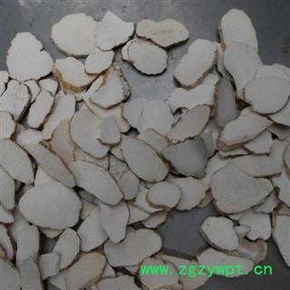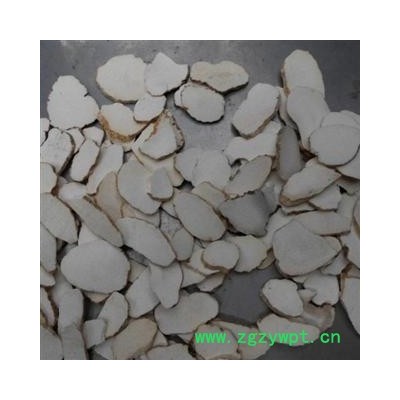 性状: 略呈圆柱形 不规则 表面黄白色,断面黄白色 表面光滑 直径约4-5cm 厚约3mm 有健脾胃,补虚作用