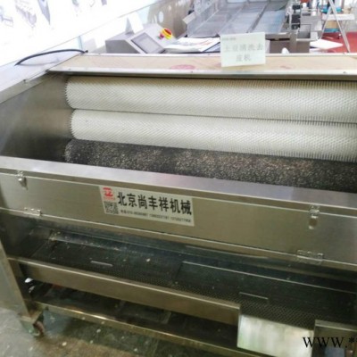 用途:适用于芋头、马铃薯、胡萝卜、甜菜、莲藕、甘薯、山药等人工难以清洗的蔬果类清洗、去皮、抛光。材质:机架、机体全部采用不锈钢材质加工制作;清洗去皮毛棍采用美国进口尼龙丝材质毛棍。特性:1.不锈钢材质,外观美观、结实; 2.凹凸型毛刷辊,能将物料凹凸部分的泥土清洗干净,清洗效果彻底; 3.毛刷辊采用进口原料,耐酸碱、耐腐蚀;在使用过程中,不倒塌、不掉毛、韧性好; 4.整机操作简便,便于清洗,且工作平稳可靠; 5.工作效率高,节省大量人力。机器尺寸:1240(L)×690(W)×870(H)(mm)1米毛刷 1800(L)×680(W)×860(H)(mm)1.5米毛刷产量:500-1000KG/HR 电源:380V?三相用途:适用于芋头、马铃薯、胡萝卜、甜菜、莲藕、甘薯、山药等人工难以清洗的蔬果类清洗、去皮、抛光。