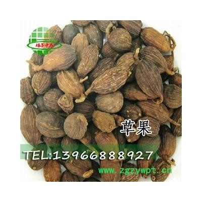 【加工方法】:10~11月果实开始成熟,变为红褐色而未开裂时采收,晒干或微火烘干。 性味:味辛,性温,无毒,功能:燥湿除寒,祛痰截疟,消食化食。主治:草果味辛,性温;归脾、胃经;芳烈燥散具有燥湿温中,辟秽截疟的功效。疟疾,痰饮痞满,脘腹冷痛,反胃,呕吐,泻痢,食积。草果果实呈椭圆形,长2至4.5厘米,直径1至2.5厘米。表面棕色或红棕色,具3钝棱及明显的纵沟及棱线,先端有圆形柱基,基部有果柄或果柄痕。果皮坚韧,内分3室,每室含种子7至24粒,多集结成团,黄棕色或红棕色。气芳香,味辛、辣。以个大、饱满、色红棕、气味浓者为佳。