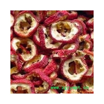 【性状颜色】:圆形片,外皮红色,褐红色、具皱纹,颜色清亮,清香诱人。不添加任色素、果皮鲜红,果肉淡黄色、果片3刀4片、没去籽好货;味酸、微甜,有无虫蛀、霉变。