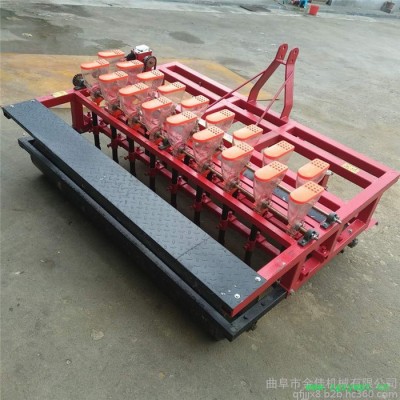 四行谷子播种机 大型自走式油菜精播机 元胡多行播种机 本产品主要是膜上播种玉米、谷子、黍子、花生、谷物类。适合于干旱半干旱地区使用。能够一次性完成前置刮土、整平、开沟、深施颗粒肥、铺膜、压膜、穴播、覆土等工序。本机采用先铺膜后播种工艺,无需人工破膜,避免了先播种后铺膜造成的繁重体力劳动。