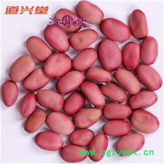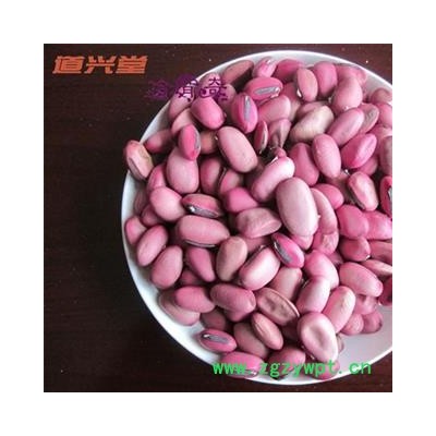 [性 状]:该品干燥种子扁肾形或扁椭圆形,长2.5~3.5cm,宽1~2cm,厚0.5~2cm。表面淡红色或红紫色,略有光泽。边缘有灰黑色线形种脐,长1.5~2cm,宽约2mm,种脐上有白色膜状珠柄残余;近种脐一端有凹点状的珠孔,另端有深色合点,种脐与合点间有隆起的种脊。种皮革质,内表面棕绿色而光亮;子叶两片,黄白色,油润。无臭,味淡嚼之有豆腥气。