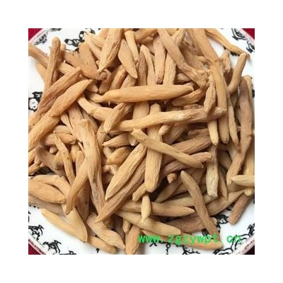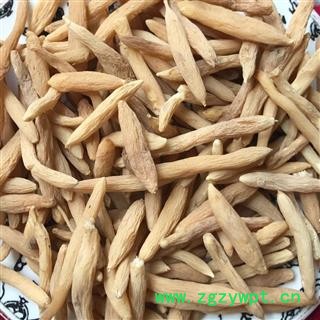 性 状:本品本品呈纺锤形,两端略尖,长1.2~3cm,直径0.4~0.7cm。表面淡黄色至棕黄色,具不规则纵皱纹。质柔韧,干后质硬脆,易折断,断面淡黄色至棕黄色,角质样,中柱细小。气微,味甜,嚼之发黏。