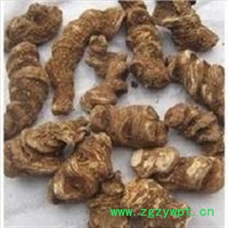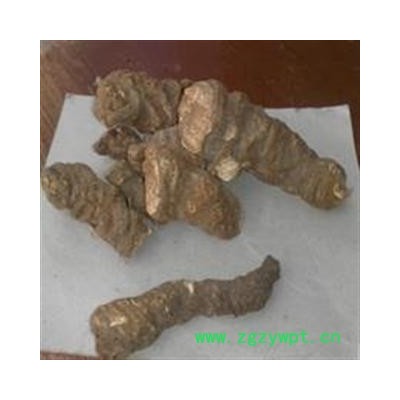 【加 工】: 本品呈扁长条形或扁圆柱形而弯曲,两端略尖,或一端渐细,有的对卷弯曲,表面紫褐色或紫黑色,粗糙,一面隆起,一面稍平坦或略具凹槽,全体密具粗环纹,有残留须根或根痕