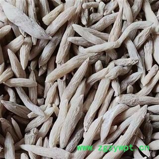 性 状:本品本品呈纺锤形,两端略尖,长1.2~3cm,直径0.4~0.7cm。表面淡黄色至棕黄色,具不规则纵皱纹。质柔韧,干后质硬脆,易折断,断面淡黄色至棕黄色,角质样,中柱细小。气微,味甜,嚼之发黏。
