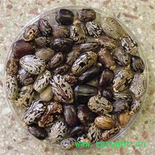 药材性状:本品呈椭圆形或卵形,稍扁,长0.9~1.8cm,宽0.5~1cm。表面光滑,有灰白色与黑褐色或黄棕色与红棕色相间的花斑纹。一面较平,一面较隆起,较平的一面有1条隆起的种脊;一端有灰白色或浅棕色突起的种阜。种皮薄而脆。胚乳肥厚,白色,富油性,菲薄,无臭,味微苦辛。