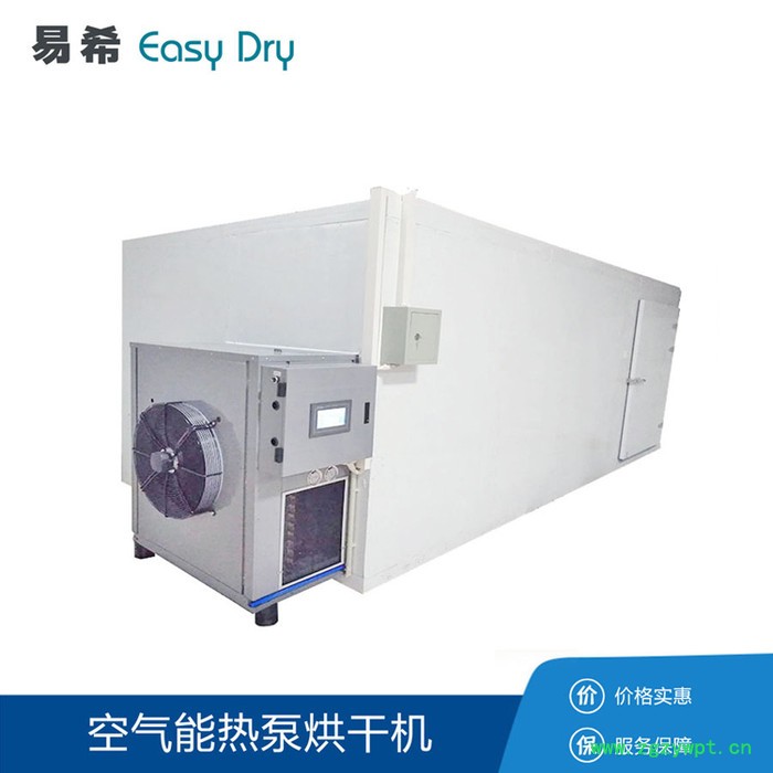 依靠电能吸收空气中的免费热量并将其转移到烘干房内(输入1度电能量能产生4度电热能),实现烘干房温度提高,配合相应的除湿设备实现物料的干燥。