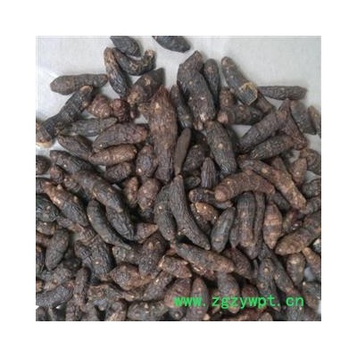 [性 状]:本品多呈纺锤形,有的略弯曲,长2~3.5cm,直径0.5~1cm。表面棕褐色或黑褐色,有纵皱纹,并有6~10个略隆起的环节,节上有未除净的棕色毛须和须根断痕;去净毛须者较光滑,环节不明显。质硬,经蒸煮者断面黄棕色或红棕色,角质样;生晒者断面色白而显粉性,内皮层环纹明显,中柱色较深,点状维管束散在。气香,味微苦。