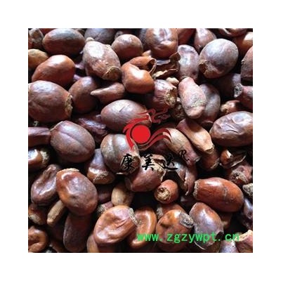 [性 状]:该品种子长圆形或长卵形,稍扁,长1.5-2.5cm。直径0.5-1.5cm。表面棕色至棕红色,稍具光泽,有不规则凹隙和细皱纹;一端平截,有近圆形黄棕色的种脐,直径5-7mm,另一端圆钝。质坚硬,剖开后种皮薄革质而脆;有2片肥厚子叶,橙黄色或棕黄色。气 微,味微甘、苦、涩。以粒大、饱满者为佳。