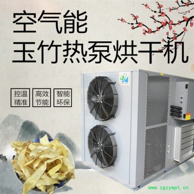 1、切片烘干:将玉竹清洗后,切片,分别放入托盘中(摆放厚度不要太厚,以免烘干不均匀),摆放完后,将推车放入空气能玉竹烘干机内, 设置烘干温度,前期温度不易过高,控制在40度,温度50%,3个小时。再慢慢升温至55度,湿度40%,总共烘干时间8小时左右。