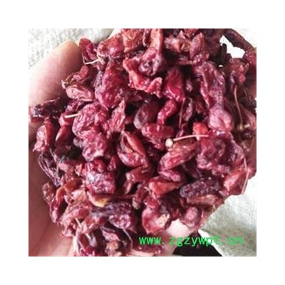 【颜色性状】:本品呈不规则的片状或囊状,表面紫红色至紫黑色,皱缩有光泽。顶端有的有圆形宿萼痕,基部有果梗痕。质柔软。体轻质韧中空有果梗不易碎
