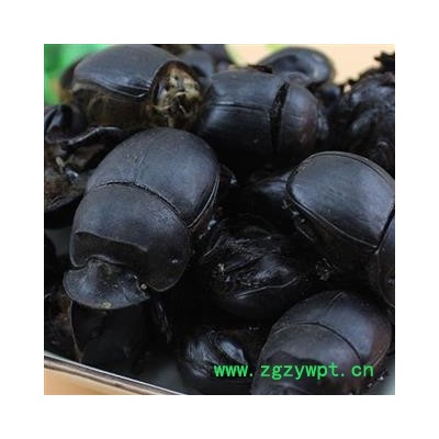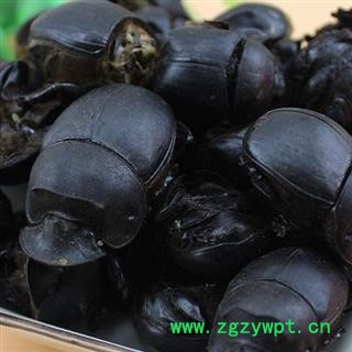 药材性状:虫体呈椭圆形,长3-4cm,宽1.8-3cm,黑褐色,有光泽。雄虫较雌虫稍大,头部前方呈扇面形,易脱落,中央具角突1支,长约6mm。前胸背板呈宽关月形,顶部有横形隆脊,两侧各有角突1枚,后胸约占体长的1/2,为翅覆盖。雌虫头部中央及前胸背板横形隆脊的两侧无角状突。前翅革质,黑褐色,有7条纵向平行的纹理,后翅膜质,黄色或黄棕色。足3对,体质坚硬。