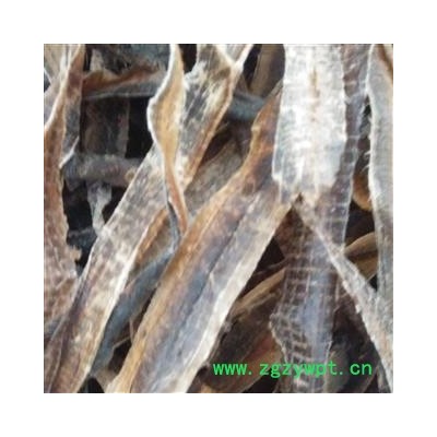 性状:长条形不规则弯曲,长约10---30cm,宽约0.8--1.3cm。中间鲜条破开,洗水,头尾部有2--5cm未破开