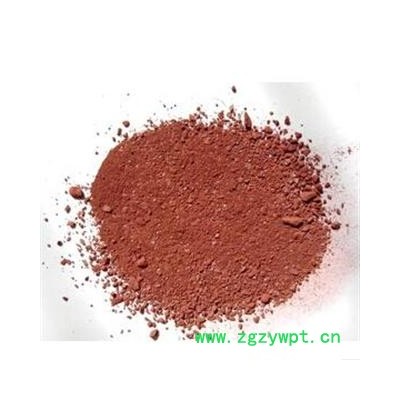 性状颜色:不规则的红色大小颗粒。触之有红棕色粉末沾手。