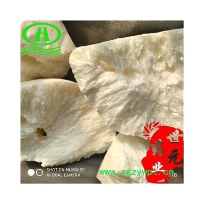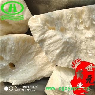 【性 状】呈块状,白色或类白色。表面平滑,或稍有皱纹,具光泽。体轻,质硬而稍脆,搓捻则粉碎。断面呈条状或颗粒状