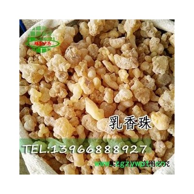 【性状颜色】:干燥胶树脂,多呈小形乳头状、泪滴状颗粒或不规则的小块,长0.5~3厘米,有时粘连成团块。淡黄色,常带轻微的绿色、蓝色或棕红色。半透明。表面有一层类白色粉尘,除去粉尘后,表面仍无光泽。质坚脆,断面蜡样,无光泽,亦有少数呈玻璃样光泽。气微芳香,味微苦。嚼之,初破碎成小块,迅即软化成胶块,粘附牙齿,唾液成为乳状,并微有香辣感。遇热则变软,烧之微有香气(但不应有松香气),冒黑烟,并遗留黑色残渣。与少量水共研,能形成白色乳状液。以淡黄色、颗粒状、半透明、无砂石树皮杂质、粉末粘手、气芳香者为佳。特质:无色或淡黄色,有树脂的香气 。
