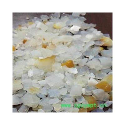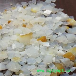 【药材性状】为不规则多角形的块状或片状物,表面乳白色、灰白色或灰蓝色相杂。质轻,松脆,易破碎。断面光亮,稍显粉性,触之有滑感。吸水力强,置水中有气泡产生,不溶于水白色透明不规则块