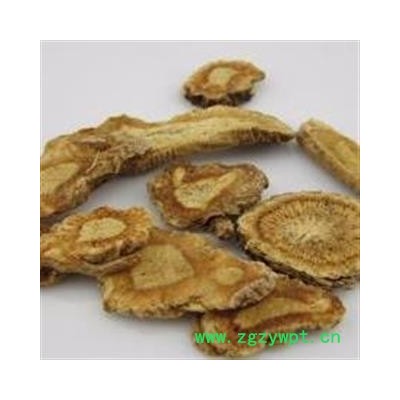 【药材性状】圆形或长圆形厚片外表面灰棕色 切面皮部浅棕色 木部浅黄色 有明显裂隙和细小油点 体轻质松 其特异味微苦