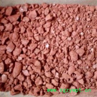 性状颜色:不规则的红色大小颗粒。触之有红棕色粉末沾手。大小颗粒粉