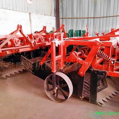 曲阜融兴药材收获机在于克服现有技术中的缺陷,提供一种结构简单、方便实用,省时省力和工作效率高的根茎类药材收获机,工作原理:经悬挂架将本机固定在大型**拖拉机后悬挂上,变速箱经动力输入轴与拖拉机上的输出轴相连接,开动机器,松土铲插入土壤中(如果深度不够,可以把拖拉机后边所带的上拉杆调短),将药材的根茎从土壤中铲出,根茎连同土块进入振动筛上,对包裹药材根茎的土块进行振动操作,振动掉一部分土块,振动后的土块和药材根茎进入前传输带