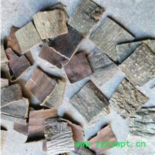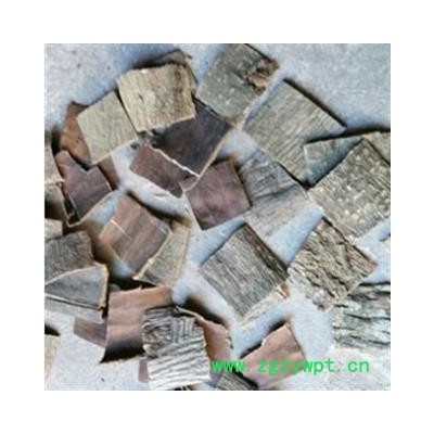 形状:本品为黑褐色树皮状物,断面有白丝。