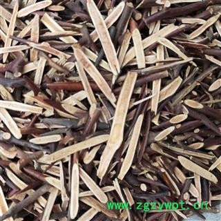 [性 状]:为主刺和1-2次分枝的棘刺。主刺长圆锥形,长3-15cm或更长,直径0.3-1cm;分枝刺长1-6cm,刺端锐尖。表面紫棕色或棕褐色。体轻,质坚硬,不易折断。切片厚0.1-0.3cm,常带有尖细的刺端;木部黄白色,髓部疏松,淡红棕色;质脆,易折断。气微,味淡。为不规则的厚片。表面木部黄白色,髓呈海绵状淡红棕色,周边棕紫色或棕褐色,质脆,易折断。无臭,味淡。。