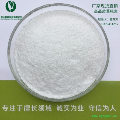 优质的药材原料 原料来源:陕西秦巴山脉野生柴葛 原料含量:>4.5% 质量:无霉变无地上部分 原料水分:<12% 重金属:<10PP 高质量的提取物 有效成分: 葛根素98% 包装规格 规格桶 25KG/桶 规格箱 按客户要求 本品是可用于医药、保健品及饲料添加剂等领域产品的原料中间体,请在专业人士指导下使用。