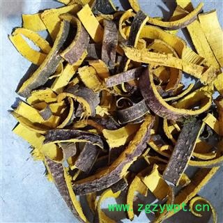 性状颜色:本品呈长条状,两端略弯曲,表皮褐色,内皮黄色