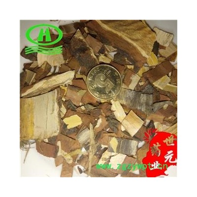 【性 状】本品呈不规则板片状、槽状或半卷筒状,长宽不一,厚2~6mm。外表面灰棕色或灰褐色,粗糙,有交织的纵皱纹和点状灰棕色皮孔,除去粗皮者淡黄色;内表面类白色或淡黄色。质韧,不易折断,断面纤维性,呈层片状