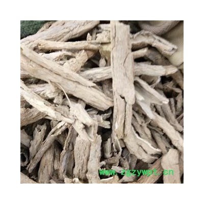 [性 状]:该品根皮呈筒状、槽状或不规则卷片。筒直径0.5~2cm,厚1~3mm。外表面土黄色或灰黄色,粗糙,有交错裂纹,易剥落;内表面黄白色,有细纵纹。质脆,折断面分内外两层,外层较厚,土黄色;内层类白色。微有香气,味稍甜。
