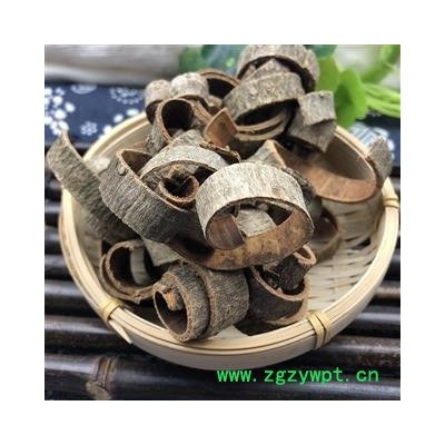 [性 状]:本品呈卷筒或双卷筒状,表皮为灰棕色或灰褐色,粗糙,内皮为紫棕色或深棕色,质脆,易折断,气香,味辛辣,微苦。