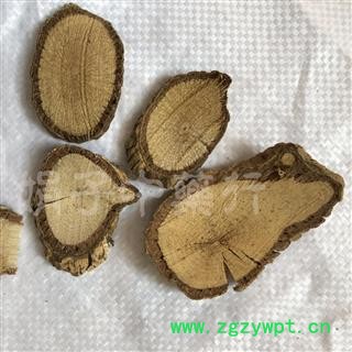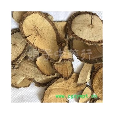 [性 状]:本品茎呈圆柱形。粗茎表面灰黄色或灰棕色,有粗纵纹,外皮常块状脱落;细茎表面深棕色,具光泽,纵纹明显,可见小枝痕或叶痕。切面皮部狭窄,深棕色,木部宽广,浅棕黄色,有密集的放射状纹理和成行小孔,髓部明显。质硬或稍韧。掌状复叶互生,小叶片长椭圆形,革质,长5~250px,宽2~100px,先端尖,基部近圆形,全缘,上表面深棕绿色,有光泽,下表面浅棕绿色,网脉明显;小叶柄长约37.5px。气微,味微苦涩。