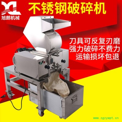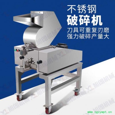旭朗不锈钢破碎机为全不锈钢材质,由机架,进料斗,破碎腔,筛网架,接料斗,电机等五部件构成,结构简单,清洗方便,噪音低,效果好。是目前理想的不锈钢破碎设备。加工时物料由进料斗进入破碎腔,经旋转的动刀与固定的静刀冲击剪切获得破碎,通过刀具间的间隙调节及配用合适的筛网获得理想的颗粒。