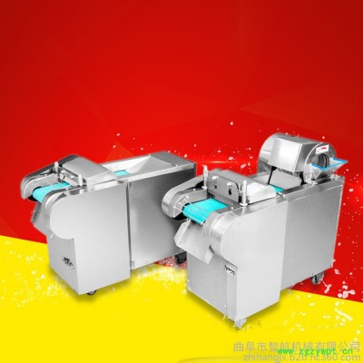 多功能型切菜机包含单切机的所有功能的同时,也可切圆形如土豆、萝卜等。 可将根、茎、叶等蔬菜加工成片、丝、丁、菱、曲线、花丁、花片等。切片装置用于硬菜(萝卜、土豆、水果、薯类)的切片,厚度在1-10毫米内自由调整;往复竖刀将刀成的菜片或软菜(韭菜、芹菜)切成直丝或段、曲线丝、方丁(或形刀)输送带每次移动距离1-20毫米自由调整。所调整量即为丝段的宽度;应注意被切菜直径较粗时(大于30毫米)出片效果才好,便于切丁,直径小时制的片或丁将会杂乱。被切菜加工面平整光滑、规则,组织完好,保持手工切制的效果。