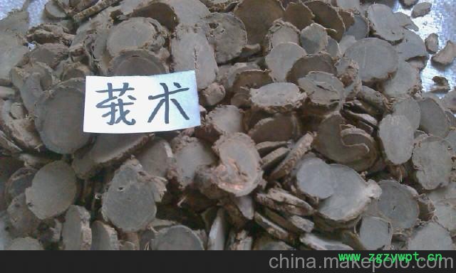 莪术,别名蓝心姜、黑心姜、姜七。多年生草本,全株光滑无毛。叶椭圆状长圆形至长圆状披针形,长25~60cm,宽10~15cm,中部常有紫班;叶柄较叶片为长。花茎由根茎单独发出,常先叶而生;穗状花序长约15cm;苞片多数,下部的绿色,缨部的紫色;花萼白色,顶端3裂;花冠黄色,裂片3,不等大;侧生退化雄蕊小;唇瓣黄色,顶端微缺;药隔基部具叉开的矩。蒴果狼状三角形。花期3~5月。