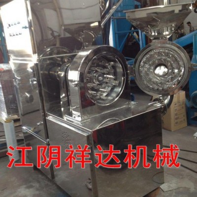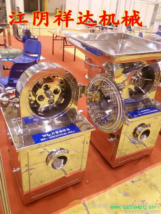 万能粉碎机利用活动齿盘和固定齿盘间的相对高速运转,使被粉碎物经齿盘冲击、摩擦及物料彼此间碰撞而获得粉碎。粉碎物可直接从磨腔中排出,粒度大小由更换不同目数的筛网决定。本机结构简洁、坚固,运转平稳,粉碎物料快速、均匀,效果良好。本机全为不锈钢材料制作,机壳内部(粉碎槽)所有齿槽经精密机加工从而达到表面平滑,易于清理,改变了普通粉碎机内壁粗糙、易积粉、难清理的现象,使食品、药品、化工等生产符合GMP要求。