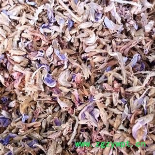 【性 状】:粉葛花花蕾呈不规则的扁长圆形或三角形,花萼黄绿色至灰绿色,萼齿显着长于萼筒,内外均有灰白色毛,上面裂片先端2分裂(2齿合生),长12-16mm,下方3裂片最长的可达20mm。花冠紫色或灰紫色,久置后呈黄白色至深黄色,5片,旗瓣近圆形或长圆形,高6-20mm,宽6-16mm,先端楔形切入,深1.0-1.9mm,基部有2短圆耳状突起;翼瓣长椭圆状,长5-20mm,宽3-5mm,基部两侧附属体呈不对称的耳状突起;龙骨瓣长6-20mm,宽3-8mm,弦侧基部附属体不明显,稍呈突起。花药长l-1.5mm,宽0.2-1mm。雌蕊具毛。体轻,无臭,味淡。