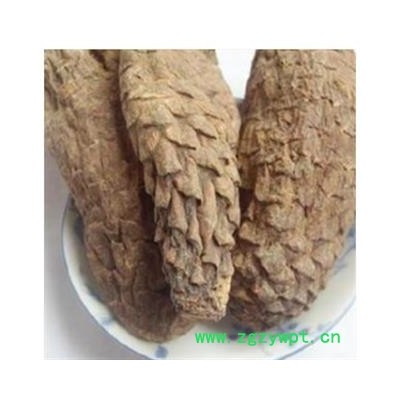 性状:长10——30cm,直径2——8cm.表面灰褐色,体重,质硬不易折断有多数鳞片覆瓦状排列。不空心,药材完整。