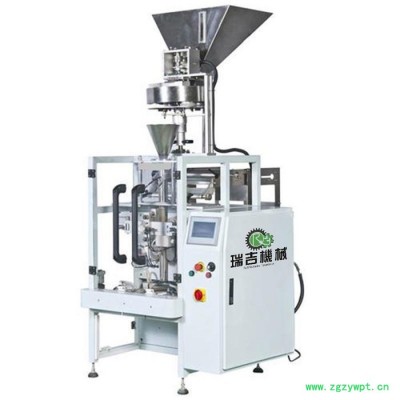 中药颗粒包装机是由电脑组合秤和量杯定量给料装置于全自动包装机组成,是一款可用于等颗粒物料的全自动包装机,采用PLC微电脑程序,伺服控制袋长,选用智能式温控仪,纵封、横封温度可独立调节,包装材料采用复合卷膜,通过制袋器自行制袋,降低包装成本,纵封、横封温度可独立调节,可自动完成卷膜制袋、打码、计量下料、封口、分切、计数等功能;具有自动化控制、封口牢固、包装精美的特点,操作简单,维护方便,可单包包装、连包包装,亦可进行袋中袋大袋的二次包装,包装重量从10克-5000克都可以满足。