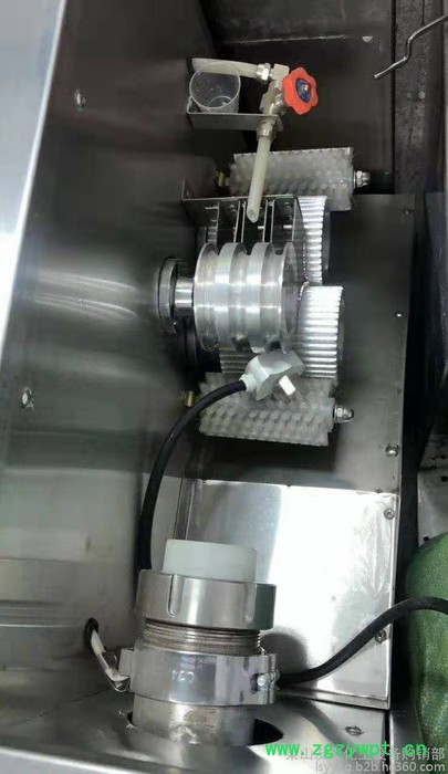 3、制丸部分的搓丸和切丸机构在一个变速箱内,机件润滑条件良好,切丸速度可以通过无级变速机的旋纽调节,使滚刀可获得6-30转/分的转速,直到切丸速度与出条速度匹配。
