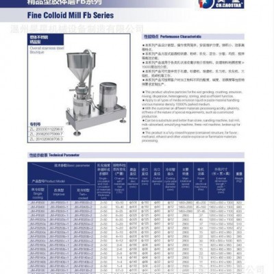 胶体磨|多功能胶体磨|胶体磨技术|胶体磨性能|胶体磨制造|胶体磨价格|管线式胶体磨|钛业胶体磨|制药胶体磨|化工胶体磨|乳化胶体磨|沥青胶体磨|陶瓷胶体磨|大型胶体磨|实验室小型胶体磨|研磨机|colloid mill|温州昊星机械设备制造有限公司专业致力于设计、开发、制造、销售食品机械设备、制药机械设备、化工机械设备、乳品设备:胶体磨[colloid mills立式胶体磨(直连式)、分体式胶体磨(傍立式)、卧式胶体磨(整机、单机)、管线式胶体磨、全封闭式胶体磨、双冷却式胶体磨、分散均质胶体磨]、多功能研磨机、钛白粉研磨机,多功能研磨机组、湿式超微粒粉碎机、胶磨机、磨浆机、水粉混合器,混合机、打浆机、均质机、高剪切乳化均机、ZB3A系列胶体泵(转子泵、凸轮泵、三叶泵、蝶型泵、不锈钢容积泵、万用输送泵)、乳匀机、螺杆泵、钛白浆料输送泵、单螺杆浓浆泵、气动浆料泵(皮革喷浆泵、打浆泵浦、插桶泵、浓浆泵)、高剪切分散乳化泵、固液混合泵、钛白粉浆料泵、超高压均质泵、饮料泵、柱塞式气动浆料泵系列(气动浆料泵、气动泵、浆料泵,气动泵插桶泵、气动防爆插桶泵柱塞式、油桶泵、气动活塞泵、气动柱塞泵、气动浓浆泵、气动往复泵、气动打胶泵、气动抽液泵,气动防爆不锈钢泵,皮革喷浆泵、高粘度浆料泵、气动泵浦、打浆料泵浦)板式换热器、各种过滤设备、洗罐球、清洗旋转球、自动喷球及卫生级卡箍、活接头、阀门管道配件及机电类产品,产品服务领域覆盖了工业、农业、交通、能源、建筑、轻工、汽车、船舶、矿山、冶金、陶瓷、钛业、高校科研院所重点实验室、航空航天等国民经济重要产业领域,为全球140多个**和地区提供专业化服务。