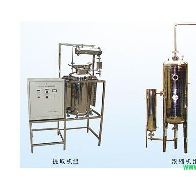 LCSR试验型超声波中药提取机组 特点: 1、 本机主要用于药厂、中药厂、研究所、医药高校等单位中试验之用。 2、 比常规提取方法、时间缩短50%以上,提取率提高20%。 3、 操作方便,设备对附助设施要求不高,只需要水、电、不需要蒸汽也可以工作。 4、 适用于各种溶剂,有机、无机的都可以。 5、 带有冷却器,挥发油回收系统,应用广泛。      6、 带有过滤系统,提取的药液可以直接进行下一步的工艺。 技术理论:   超声波是一种弹性机械振动波,是听觉阈以外的振动,它产生强烈振动,高速度,强烈的空化效应,搅拌作用,因此能破坏植物药材的细胞壁,使溶媒能渗透到药材细胞中,从而加速药材中的有效成分溶解于溶媒中,以提高有效成分的提取率。同时以常规方法提出的有效成分作对照,考察超声提取出的有效成分的结构是否有改变。据文献报道,经对两种方法所得到的有效成分进行薄层层析、红外光谱和核磁共振光谱的对比分析,两只所得的图谱一致,说明超声提取不会改变有效成分的结构,并且缩短了提取时间,提高了提取率,从而为中草药成分的提取提供了一种快速、高效的新方法。 技术参数: